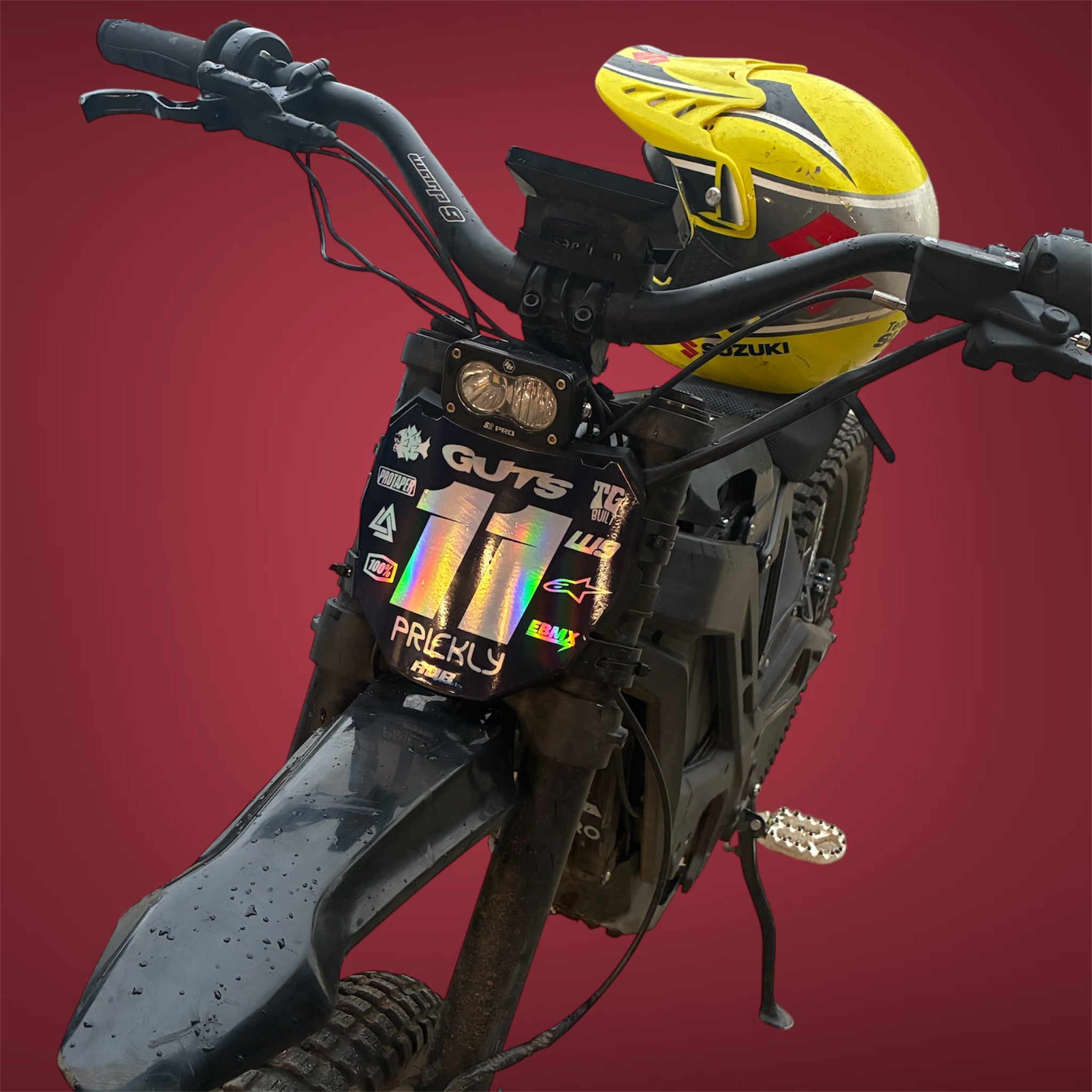 MotoCutz Style Front Number Plate Decal- Red - 11 Logo - Talaria/ Surron/ E-Bike- Includes Free Mini Decals