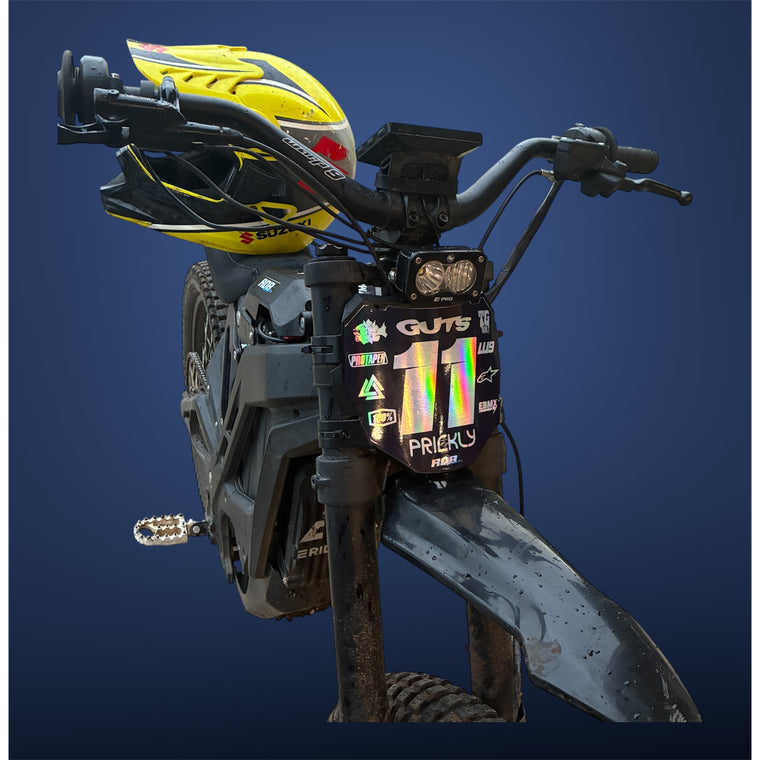 MotoCutz Style Front Number Plate Decal- Holographic Chrome - 11 Logo - Talaria/ Surron/ E-Bike- Includes Free Mini Decals